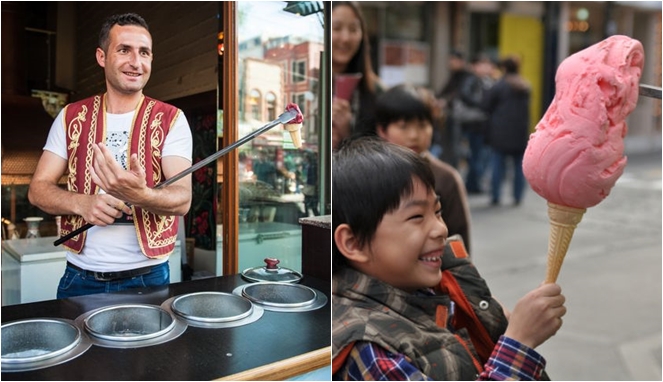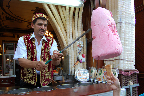 Legend has it that a merchant would have forgotten his drink all a night. It has frozen. And in the morning he discovered the first Turkish Ice Cream : “Maras dondurmasi “. It was three centuries ago.