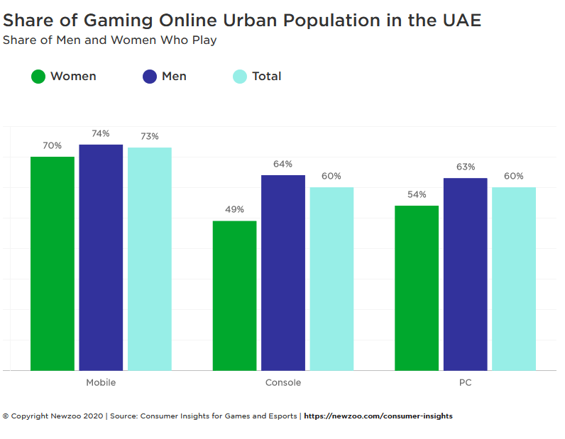 “Relatively speaking, its online population is among the world’s biggest spenders on games—both in terms of the share of spenders and the amounts they spend. Half of UAE’s online population spends money on games.” “Around 39% of gamers in the market spend on mobile games, compared to 38% on console and 33% on PC”. “the UAE generated game revenues of $283 million last year” – Newzoo study.