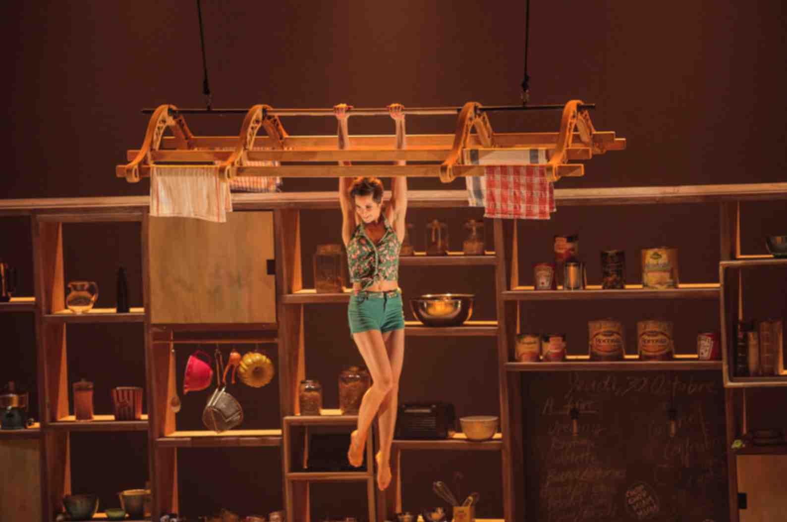 The madness begins during the set design – it’s about creating a huge, immense kitchen – and capable of withstanding the bewildering acrobatics of the trapeze cooks.