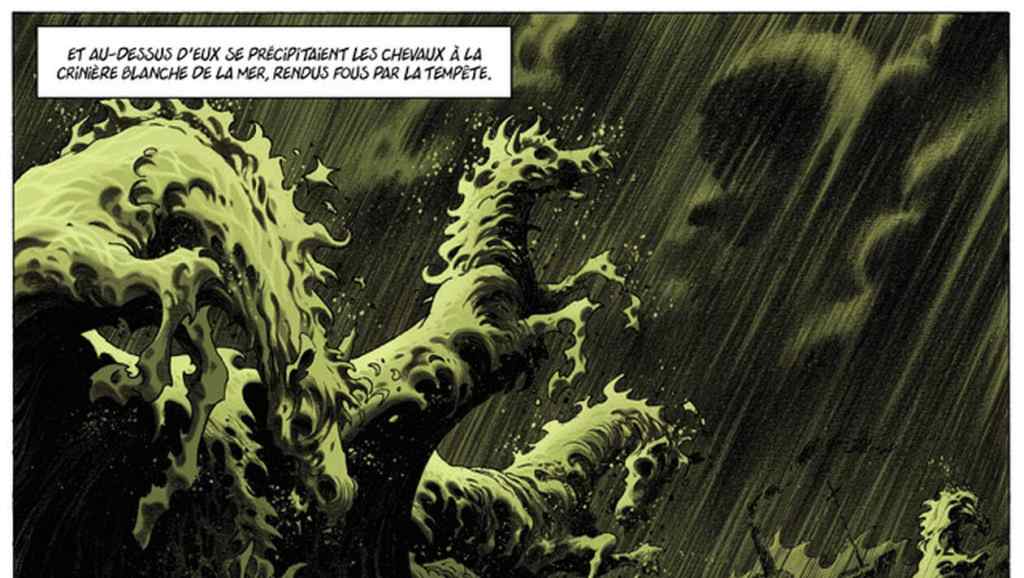 It is extraordinary, isn’t it this wave? He regularly “puts” shapes in his foam drawings – frankly, even if I don’t know if it’s published in English, his drawing is enough. And then the books he adapts are in English, so one into the other, it must be understandable. 🙂