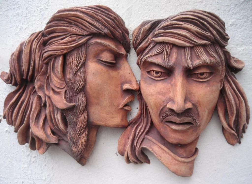 Iago and Othello by Cyd Jupe – Ceramic Sculptor – Face the wall